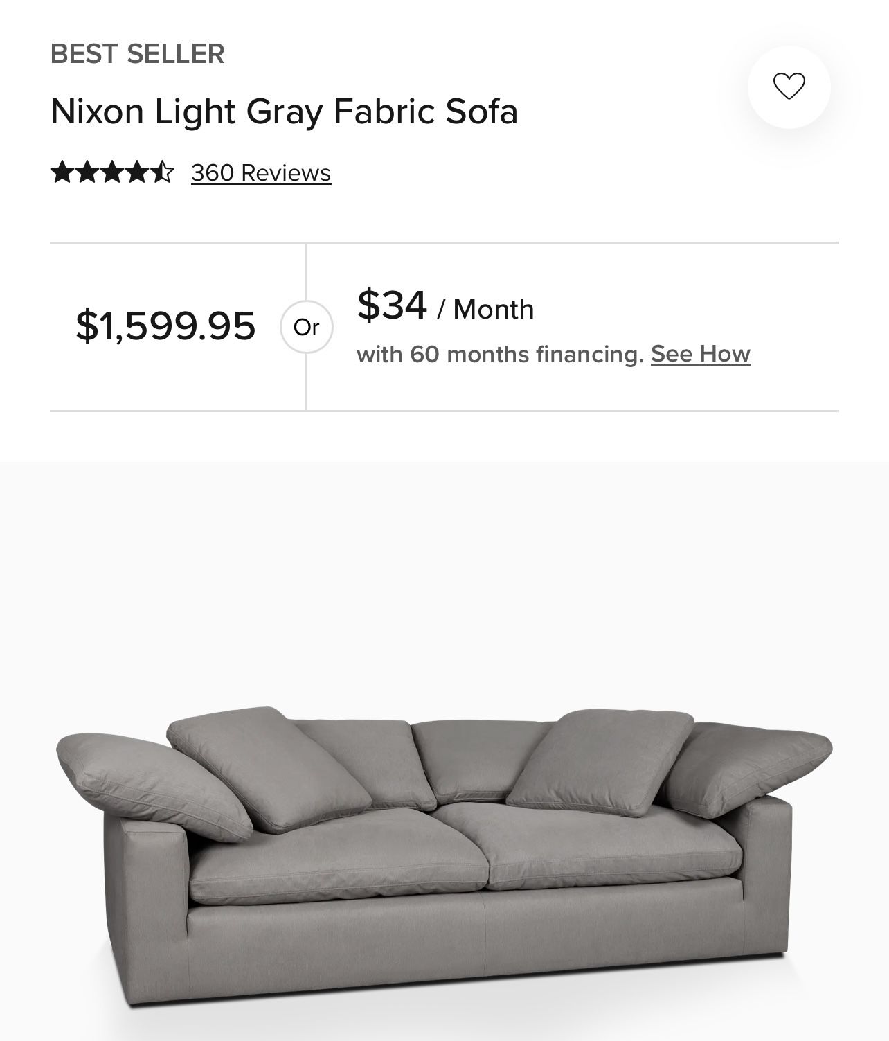 Nixon Loveseat Cloud Couch Gray Fabric City Furniture Sofá FREE DELIVERY