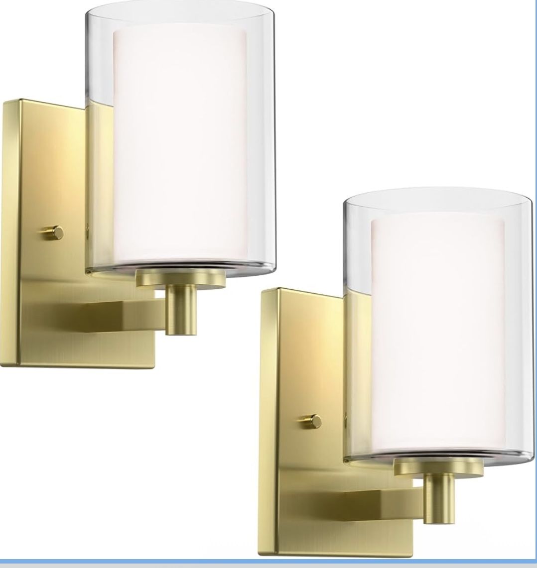 New 7”L Set of2 for Bathroom Vanity Indoor Stairwell & Mirror, Double Glass Shade&Gold Rustproof E26