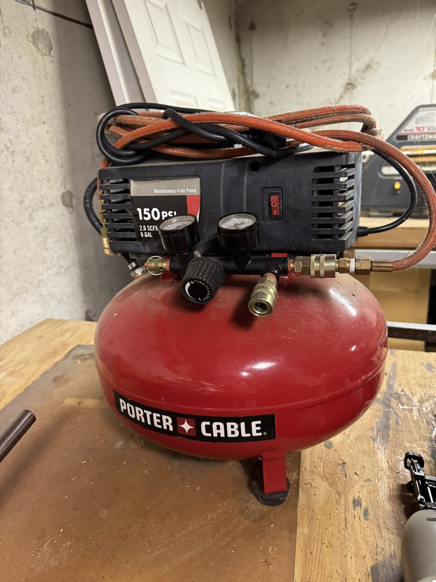 Includes air compressor, 3 nail guns and various nails and attachments Great condition