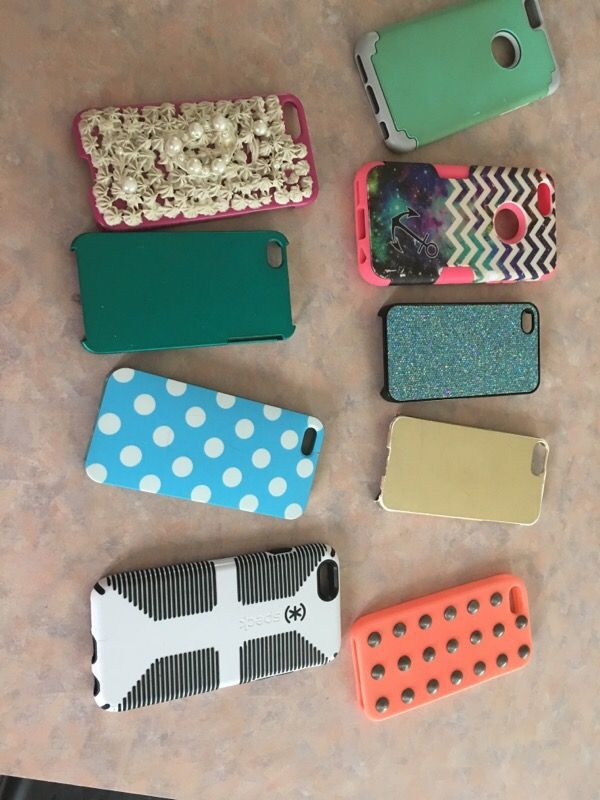iPhone cases few for iPhone 4, iPhone 5, iPhone 6. Few scratches but some are perfectly fine. $1 each