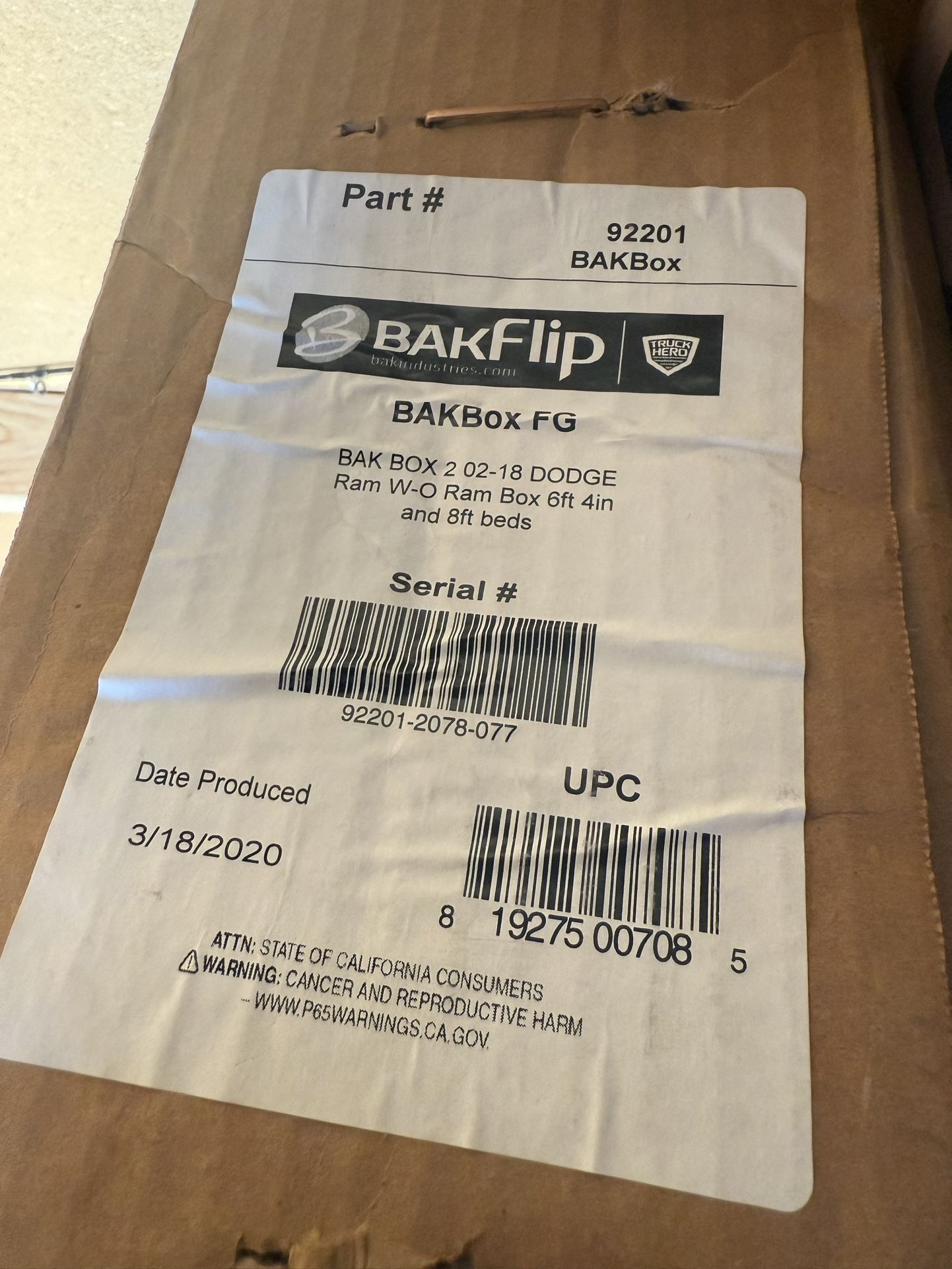 Bakflip storage box. Fits with the bakflip cover on. Search model number on pic for dimensions.