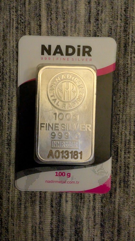 Nadir 999.0 silver bar 100g in package. Never opened. Local NJ meet ups only at this time.