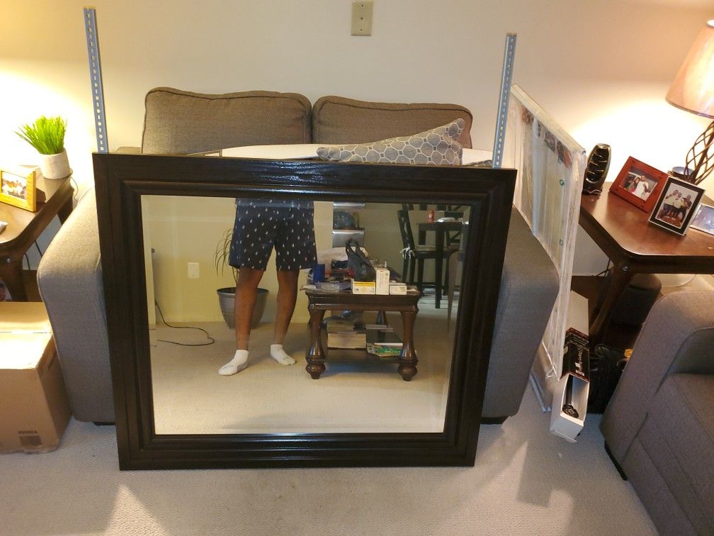 Dresser mirror for sale! Nice square shaped mirror perfect for a large dresser. Its in good condition. I do not have the screws to put it together though.