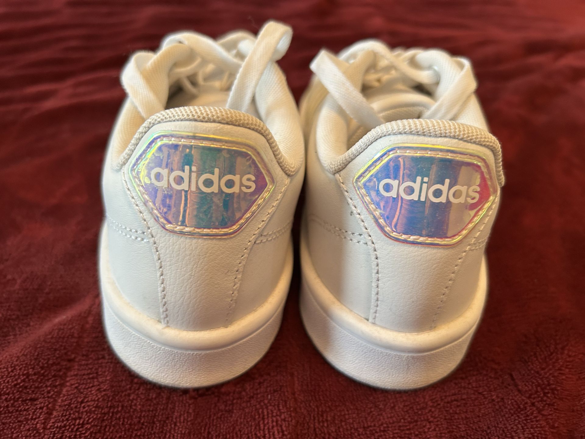 Women’s Adidas Cloud Foam White & Pearl Holographic Heel Hwi28y001 Size 6.5 Only worn a few times. Cash or Zelle only. Pick up only from Tab Roberts Rd, Lawrenceville 30043