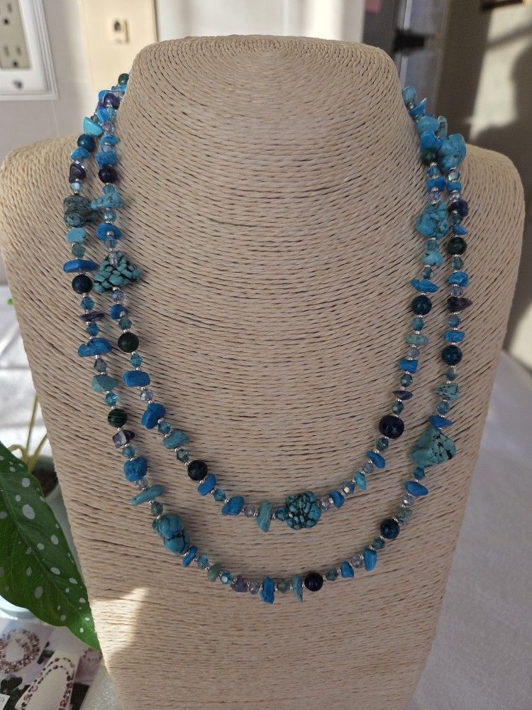 Newly made long necklace with easy to use toggle clasp. Wear it long or double down to showcase the beauty of the gemstones.