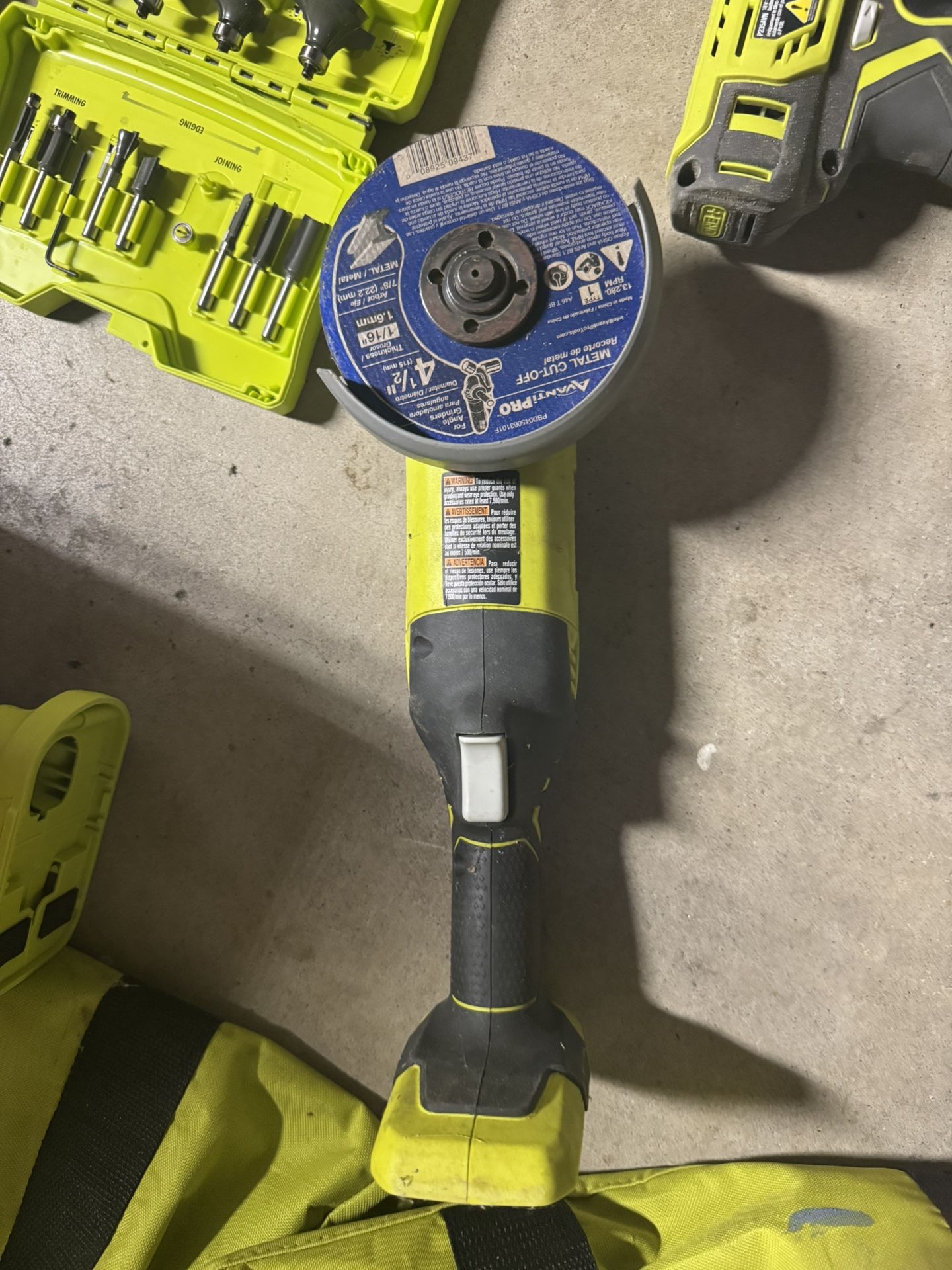 angle grinder in the image is a Ryobi ONE+ 18V 4-1/2 in.