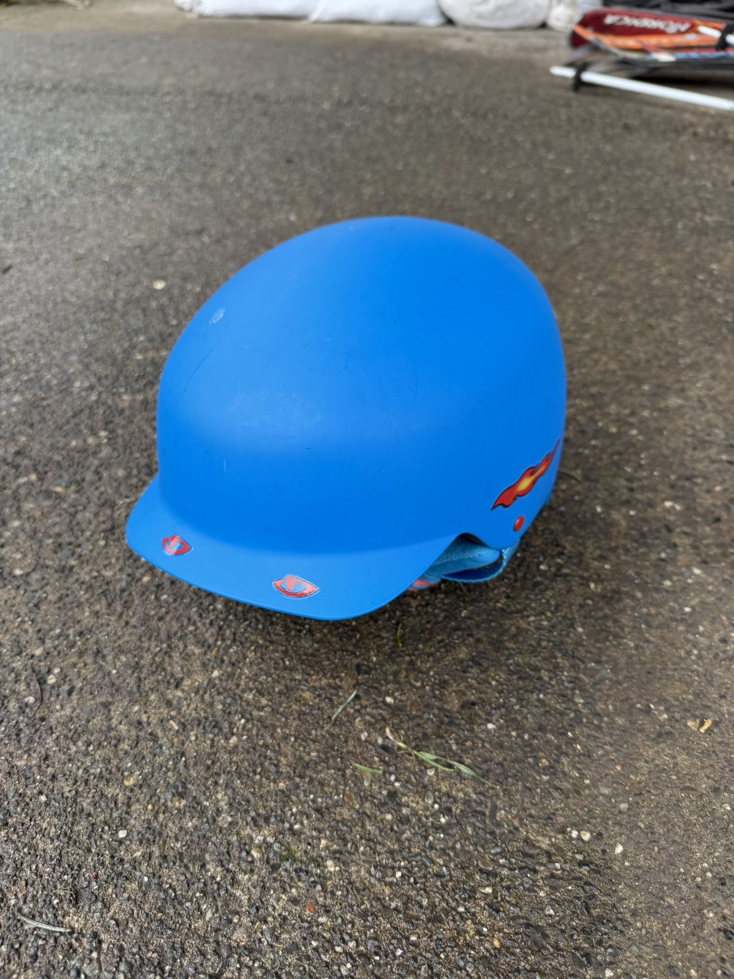 God condition blue ski helmet for kids with red lining in good condition very cute for new children starting out