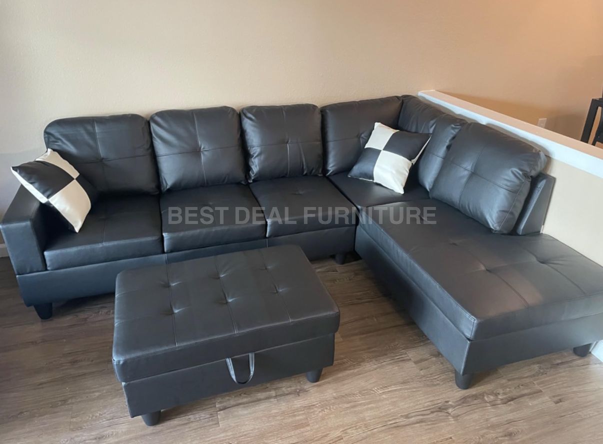 • Brand new in factory box Includes: sectional + pillows + storage ottoman • Delivery available — same/next-day • Pay on delivery