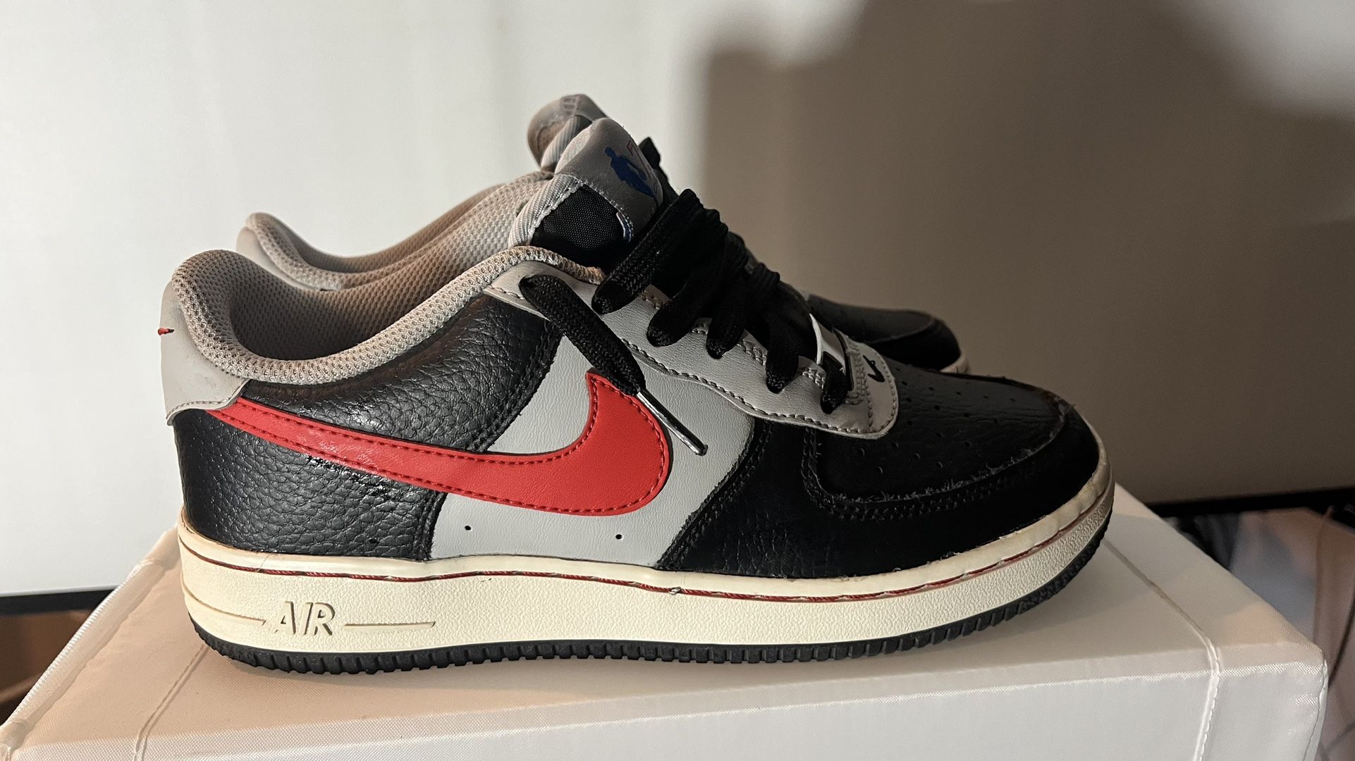 Nike Air Force 1 Black Chile Red NBA 75th Anniversary DC8874-100. New in the box sells for $175 Nike sneakers, boys, size 6,5, good condition, no insoles