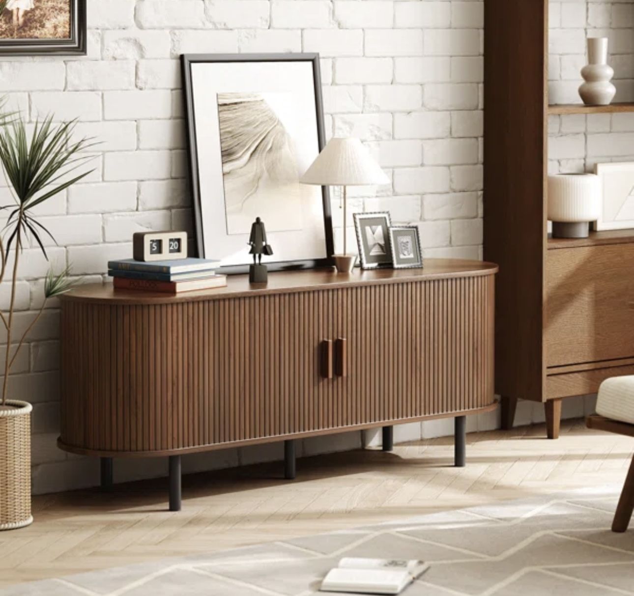 Modern Wood TV Stand With storage And Shelves
