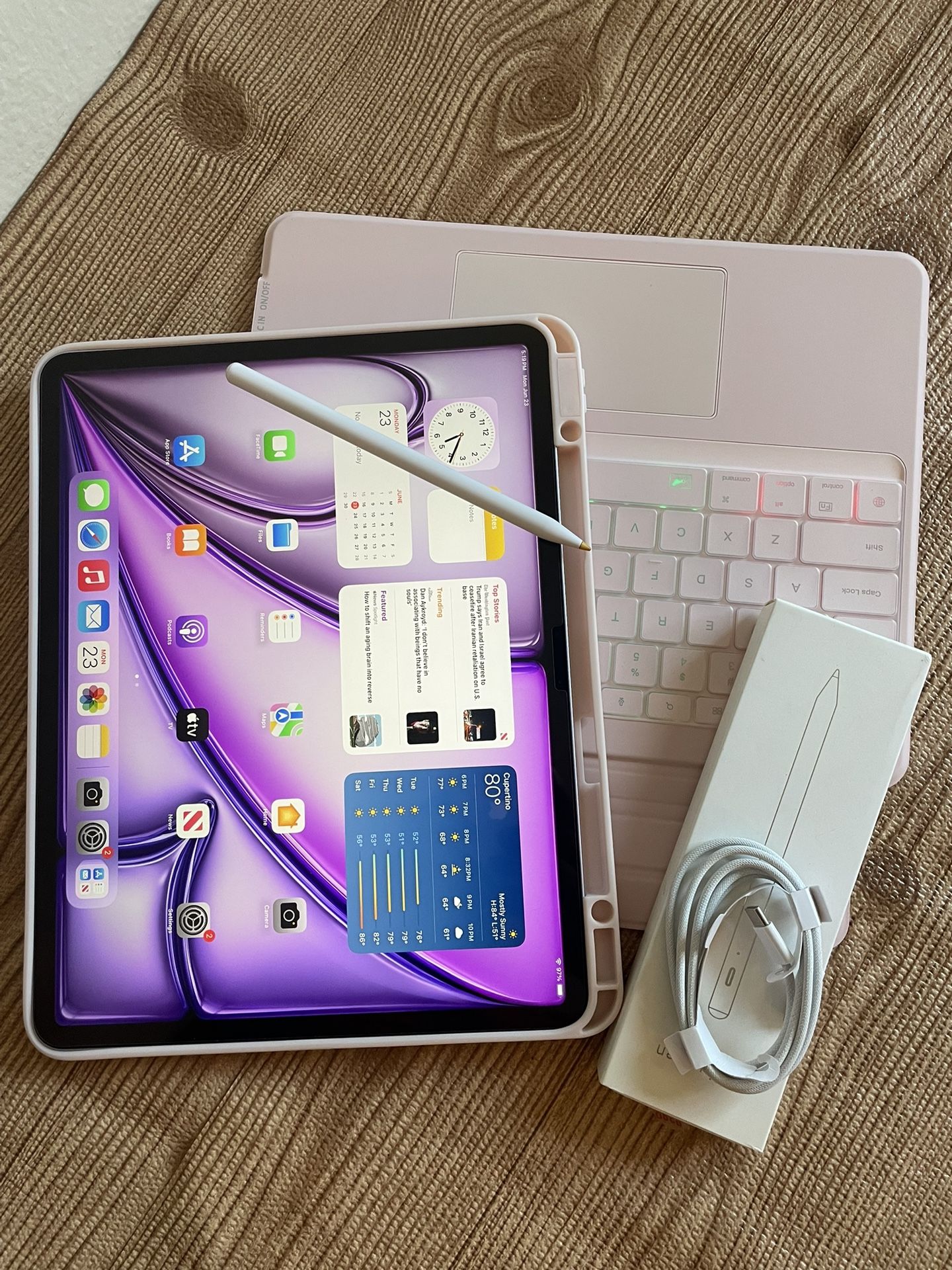 iPad Air 13” (M2 chip / 2024 / purple color) 128GB with pink keyboard case and stylus pen