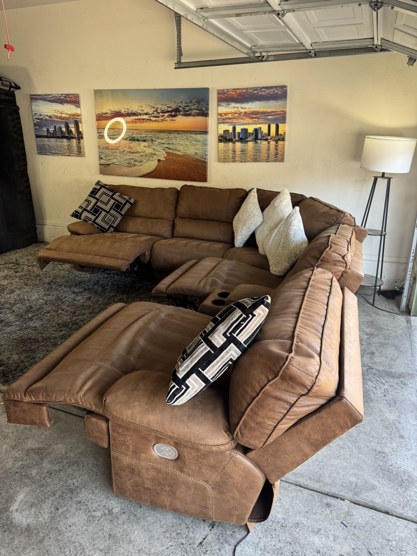 This gorgeous 6pc ashley furniture electric recliner sectional is ready for its new home π This reclining sectional set is large enough to fit family & friends with comfort . You are sure to love the firm comfortable seating . It has 3 recliners tottal that work perfectly as they should with push of button also has 2 cup holders & storage built in USB The color is sure to match any decor you have or choose . Can easily keep this nice & clean & has already been professionally cleaned for you . β smoke free home β no stains or rips β fully cleaned & sanitized β built to last β firm comfortable seating β built to last Measurements π° Sectional = 102β inches x 112β inches π° payments are at the time of delivery only Zelle, Venmo ,Cash app ,cash ,Apple Pay ,all accepted FREE DELIVERY π