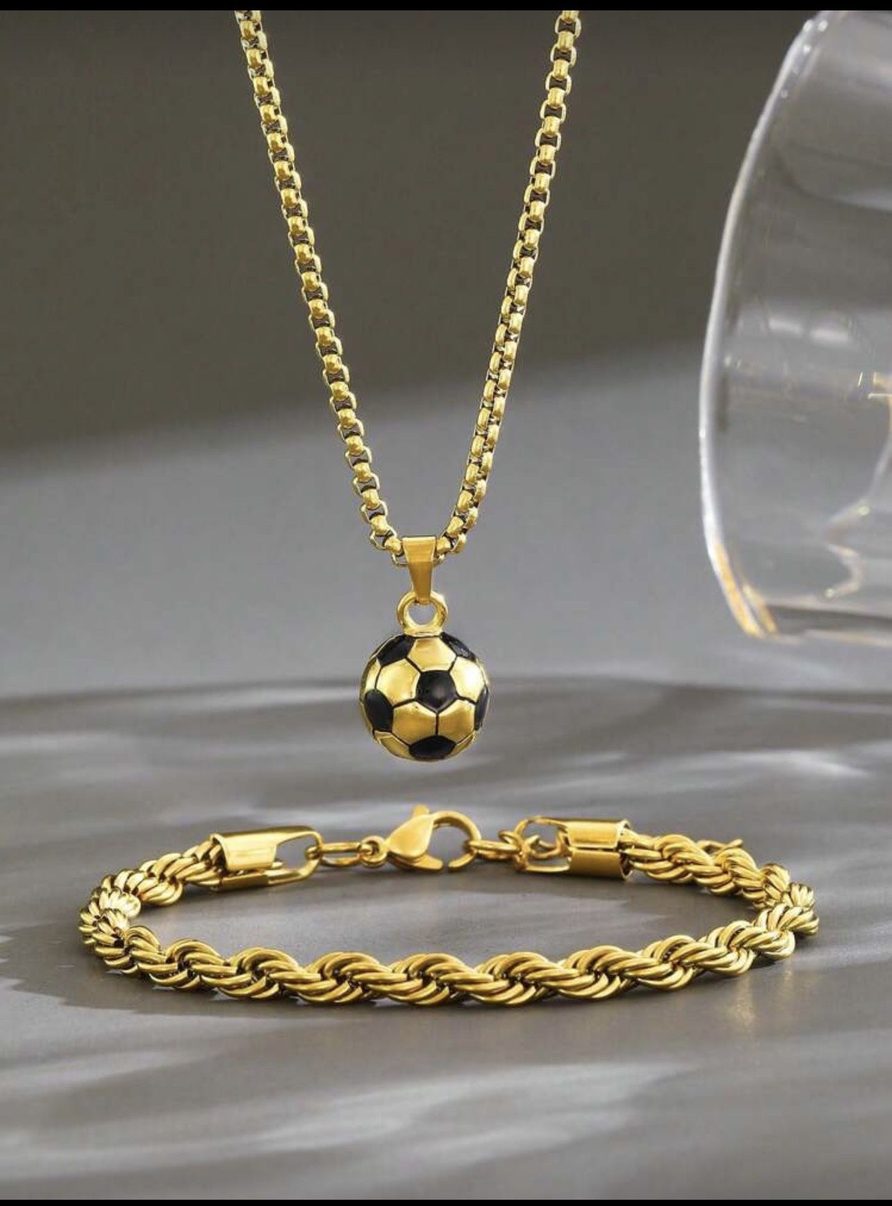 1pc Sets Gold-Plated Titanium Steel Football Pendant Necklace, Unisex, Fashion Streetwear Party Outdoor Sports Accessory, Daily Decoration Gift available in Silver