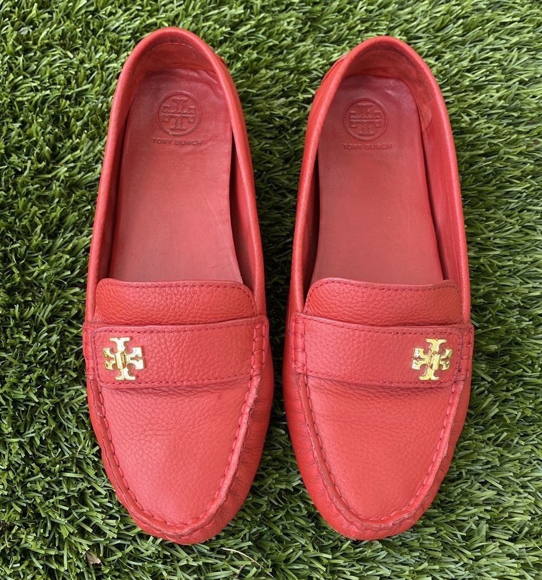 Tory Burch Flats Genuine Leather Moccasins Red & Gold Women’s 7.5 (Preowned) Preowned and cleaned it. Pet and smoke free house. Do not come with the original packaging. Retail Price: $300 Shipping within 24 hours. They have some signs of wear. Please look at the pictures. Check my inventory, I have more than 40 different shoes available. Make your bundle to get a discount.