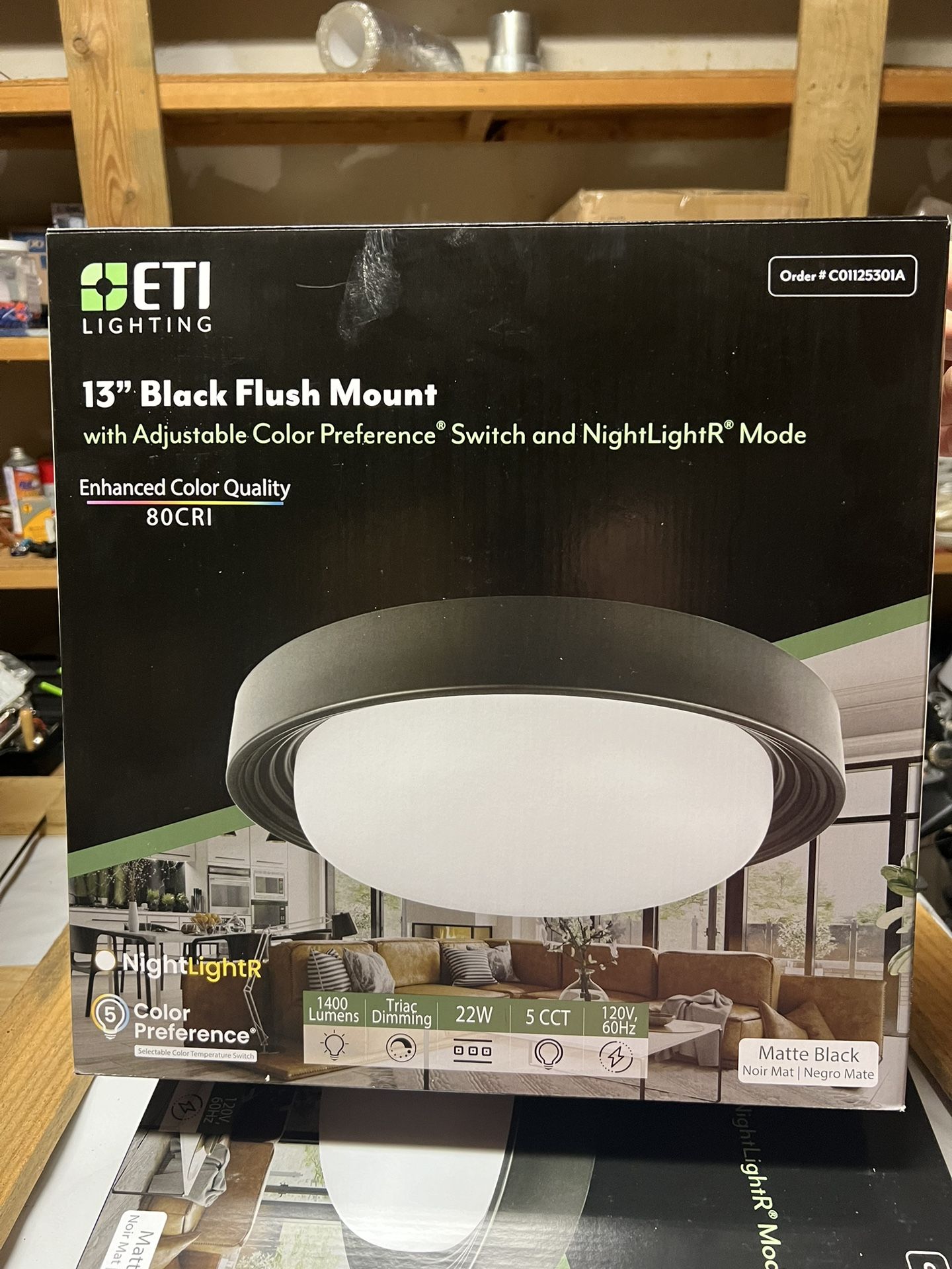 ETI 13 in. Matte Black Selectable LED Flush Mount