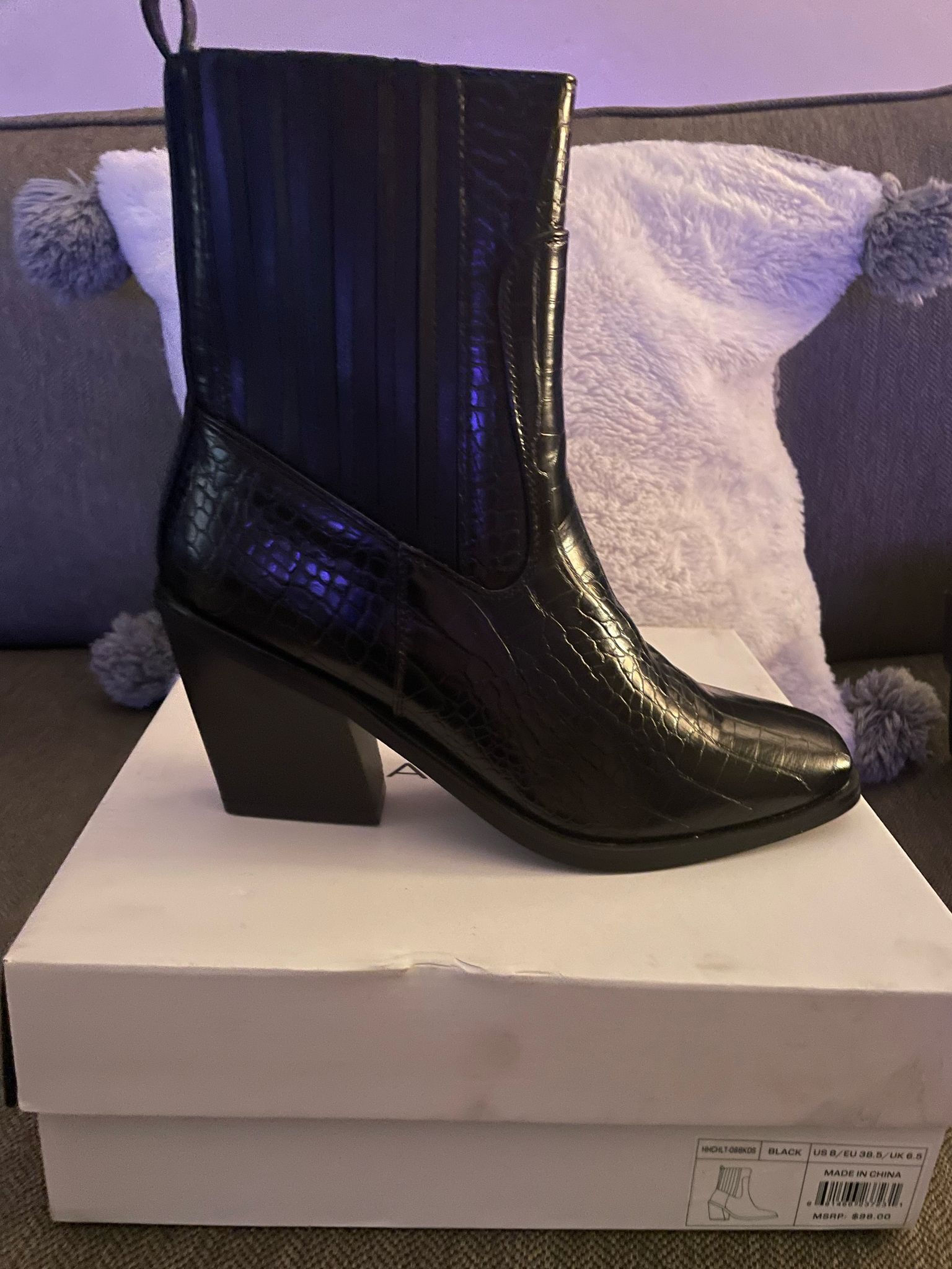 I’m selling these brand new booties black, they’re size 8, have faux leather and are super comfy, they’re brand new in box. Currently moving and getting rid of stuff i have not used.