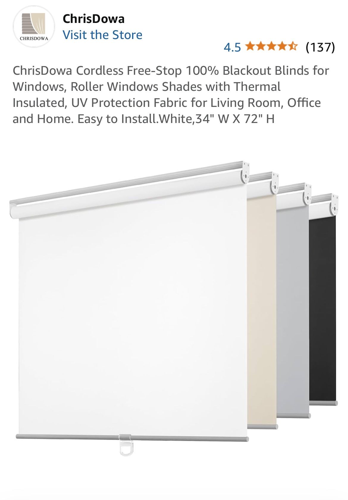 COMPLETE BLACKOUT ROLLER SHADES FOR WINDOWS 34 inches wide, 72 inches long RETAIL FOR $54.99+ tax on amazon $30 16th st & missouri ave in phoenix blinds, roller shades, blackout window treatment, cordless 3162