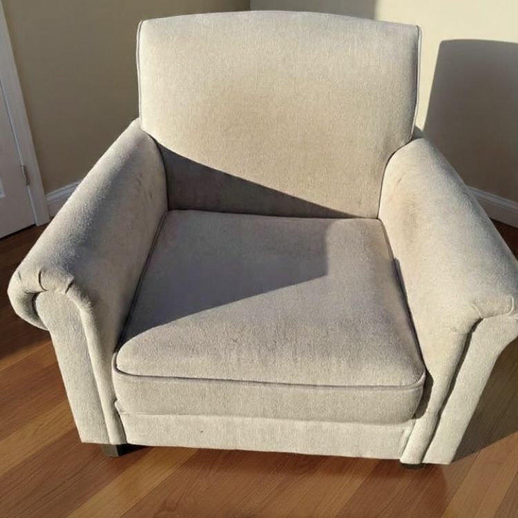 Cozy neutral beige armchair – perfect for living room, bedroom nook, or office! Rolled arms, high back, plush cushioned seat – super comfortable and supportive. Soft linen-like fabric in a versatile light beige that matches everything. Approx size: 35” wide x 35” deep x 38” tall (standard armchair – can measure exactly if you ask). Condition: Gently used, smoke-free/pet-free home. Clean with no rips, tears, holes, or big stains. Some light spots/shading/wear from normal use (shows in photos, especially lighting), but sturdy frame – no sagging or wobbles. Easy to spot clean/vacuum to refresh. Great everyday chair ready for its next spot! Asking $60 OBO ($50 if quick local pickup). Local pickup in Rocklin preferred. Delivery available in Rocklin/Roseville/Sacramento area (extra fee, usually $20–$40 depending on distance/zip – message me yours for a quick quote). Cash, Venmo, or Zelle. First come, first served. Message to view or arrange! No lowballs please – priced to move fast. Questions? Hit me up!
