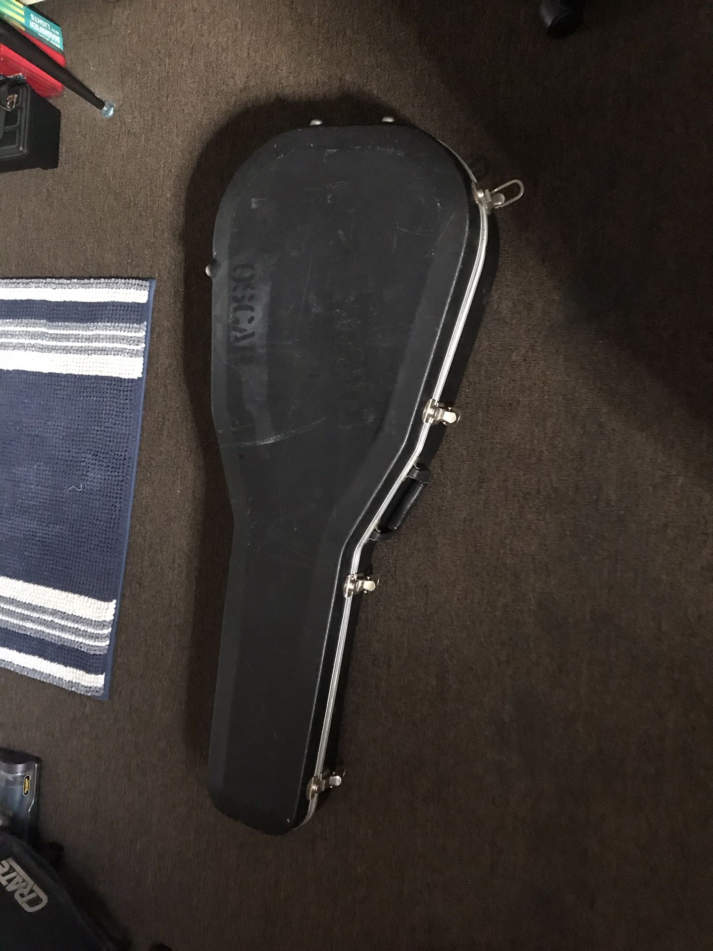 All latches work & lining material in excess condition. Acoustic guitar needs repair.