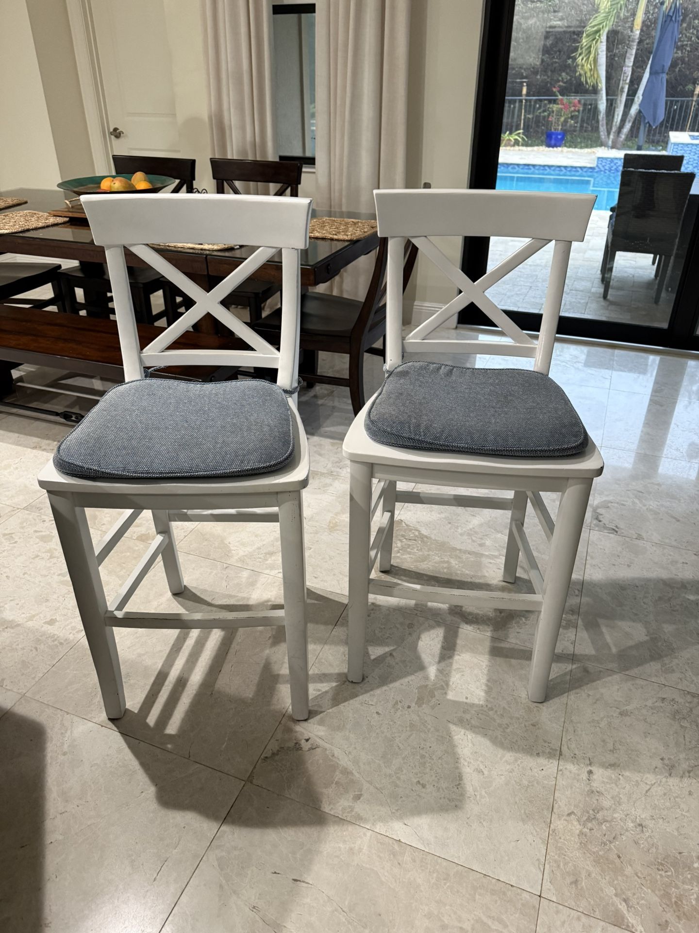 4 Real wood pottery barn bar stools. Amazing price and good quality !!!! Don’t miss this opportunity!!! Seat height 26 Back height 42