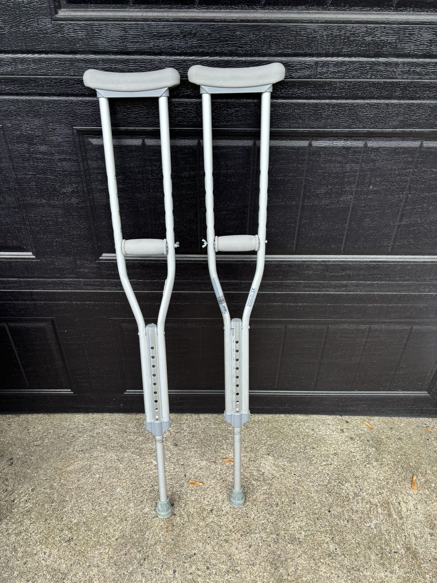 Brand: drive Medical Size: 4’6” to 5’2” Functionality: Adjustable Max User Mass 158 kg / 350 lbs Non skid rubber tips Aluminum Rubber cushion underarm & hand grip pads