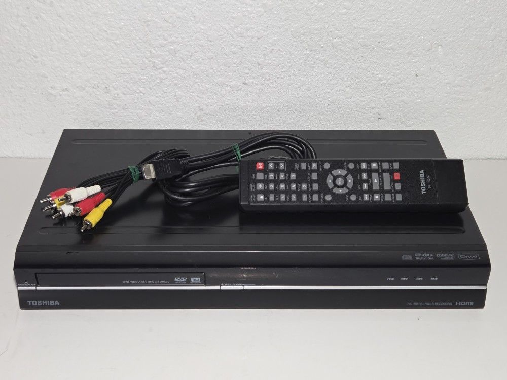 Toshiba DR570KU HDMI 1080p Upscale DVD Recorder Player With Remote HDMI & AV. It is fully functional, and it comes with the remote HDMI cable and AV cables. I took a picture with the AV cables and one with the HDMI cable so you can see both connections work perfectly fine! I'm always open to a good offer! Acepto cualquier oferta buena! Don't forget to check out my other items. No olvides ver los demas articulos en venta.