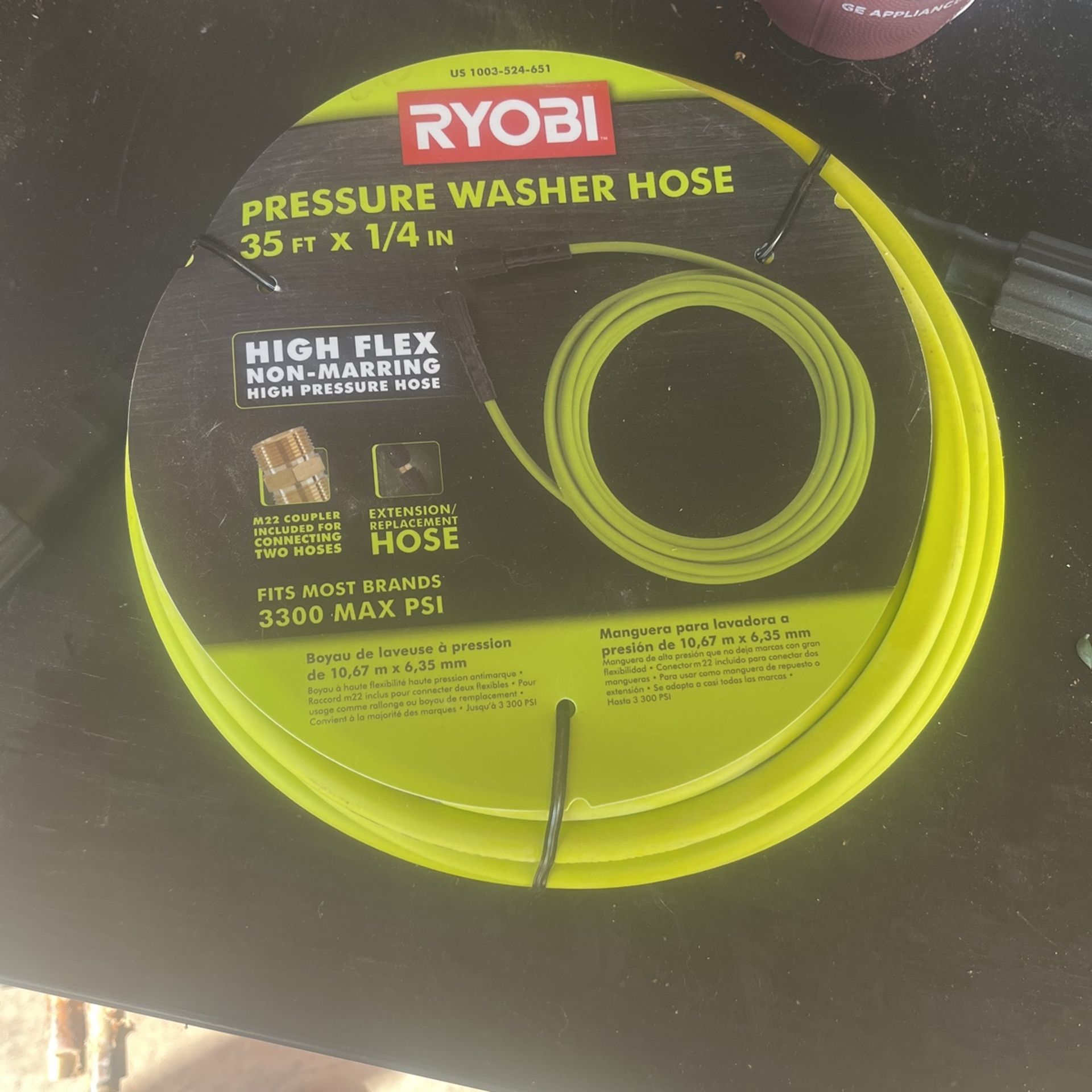 This is NEW. 35ft x 1/4 in High Flex Non-Marring High Pressure Hose. 3300 psi. Fits most brands.
