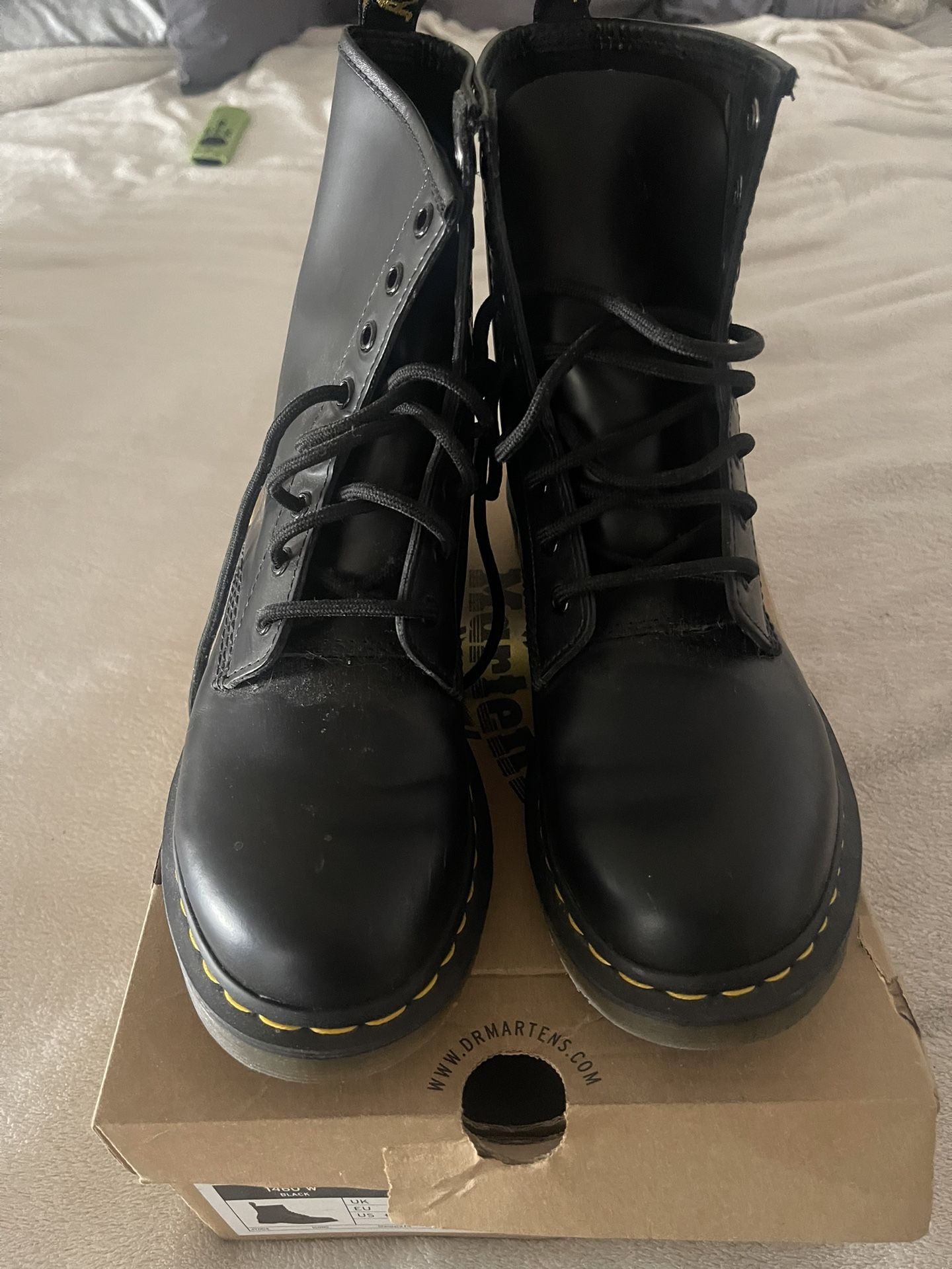 Dr. Martens Female Boots W9 comes with Dr. Martens Airwair with bouncing soles(cloth,Dubbin) never worn. What you see is what you get. Thank you for looking.