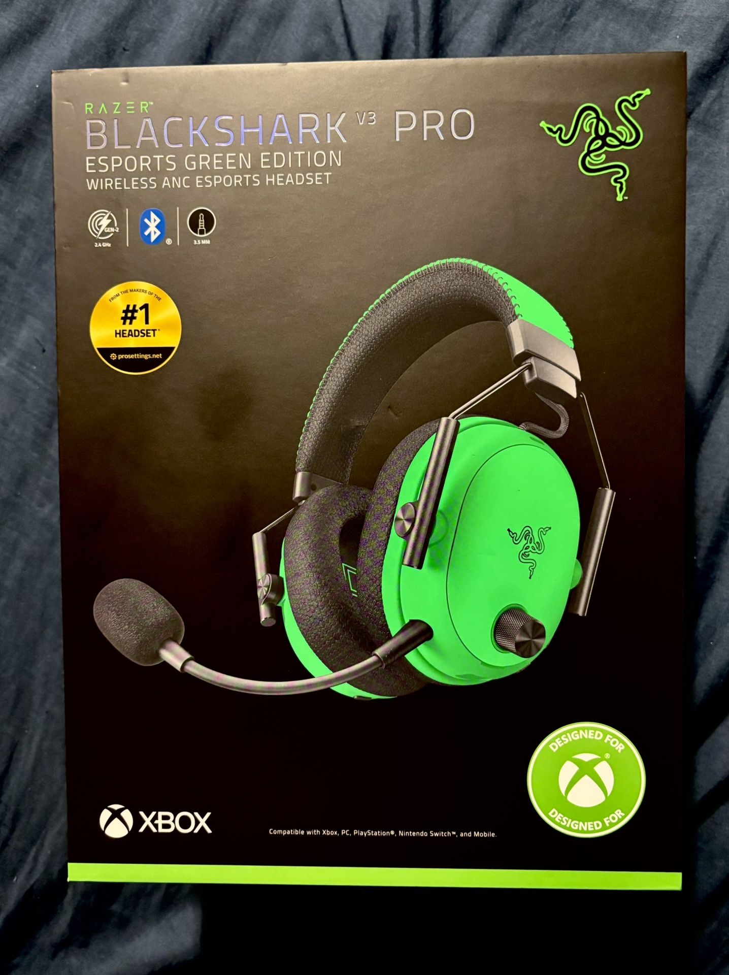 Brand new in sealed box Razer Blackshark Pro V3 wireless ANC gaming headset, retails for $250 Color: ESports Green Edition Features: Hyperspeed Wireless Gen-2 with ultra low latency (as low as 10ms) Simultaneous Audio capable (2.4 GHz & Bluetooth) Hybrid Active Noise Cancellation Razer Triforce Bio-Cellulose 50mm Gen-2 Drivers Razer Dual-Layered Flowknit Memory Foam Cushions Razer Hyperclear Full Band 12mm Mic Surround Sound powered by Windows Sonic & THX Spatial Audio The perfect gift for the gamer on your list! Make me an offer, can deliver Sunday anywhere within reasonable driving distance.