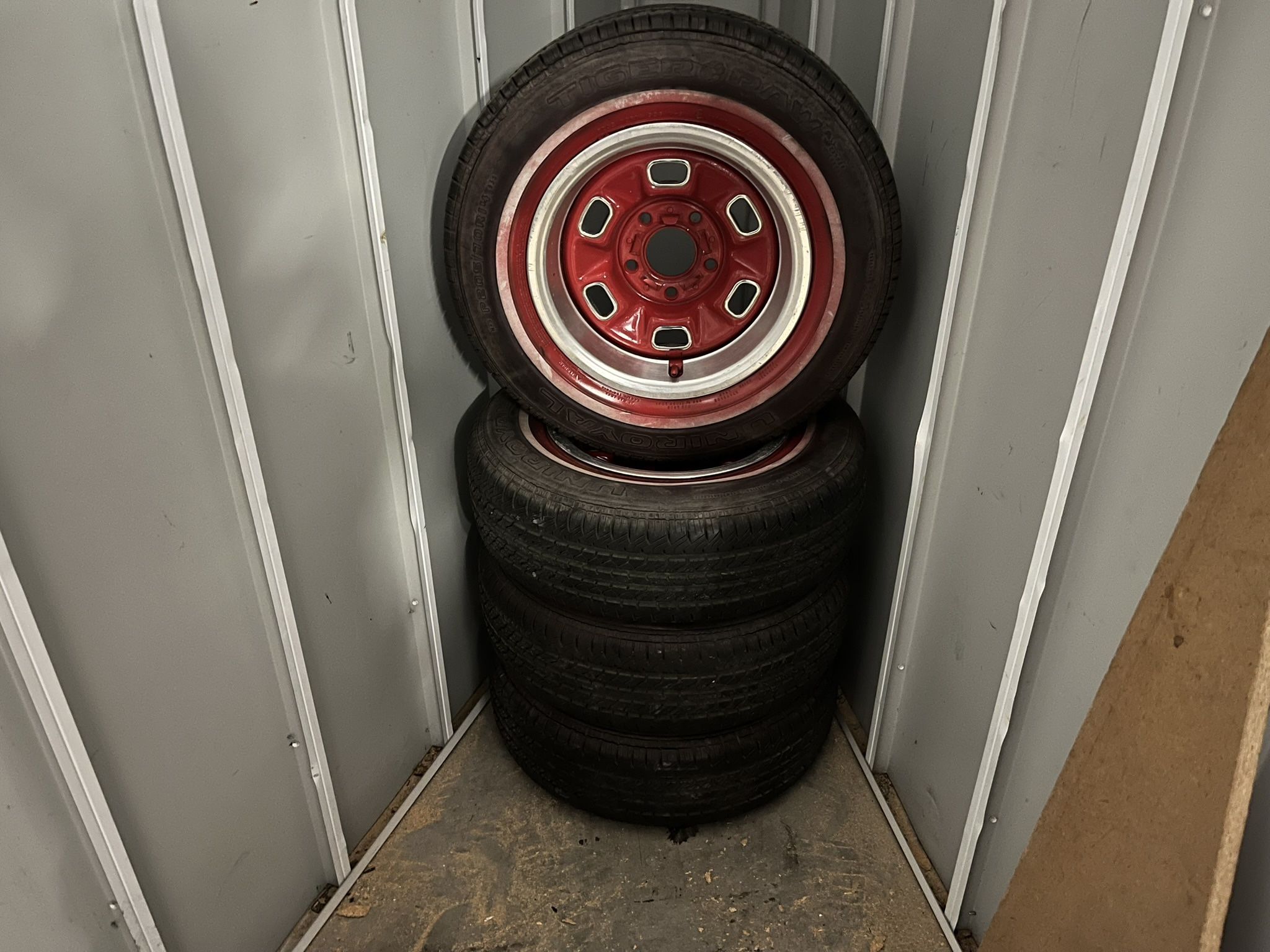 Rims with Tires P205/70R14 painted red. Auto parts For sale