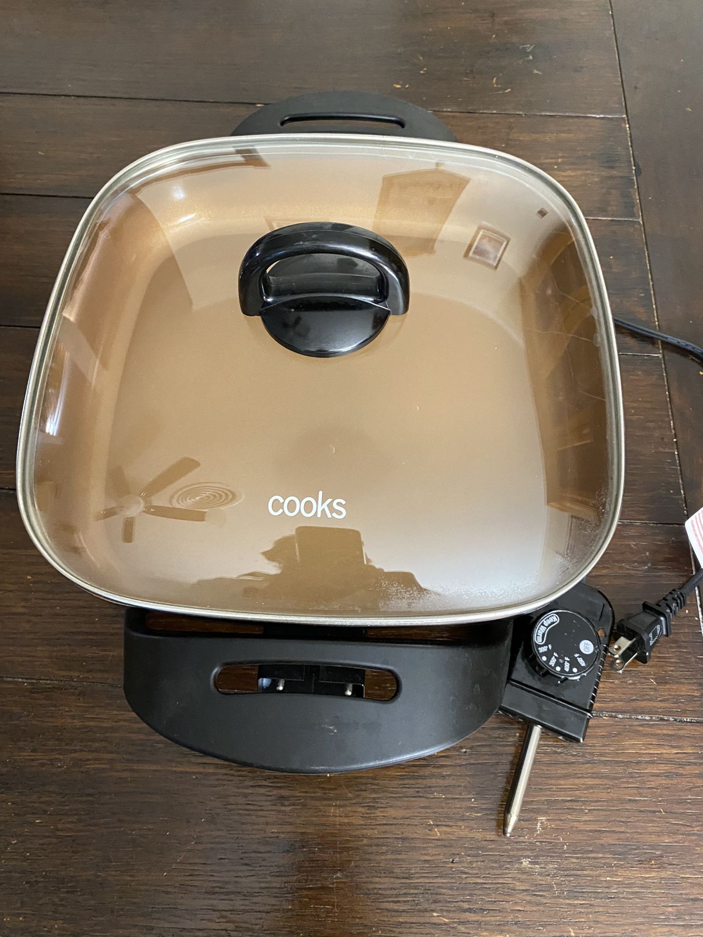 Cooks tray 12-in L x 12-in W 1200-Watt Non-Stick Electric Skillet Copper ceramic infused coating Adjustable temperature Fast and even heating Easy to clean non-stick surface