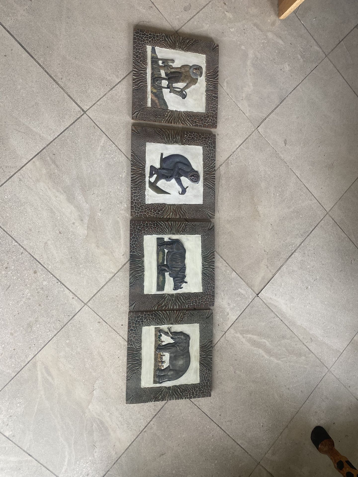 4- 12 1/2 x 12 1/2 animal safari ceramic hanging tiles