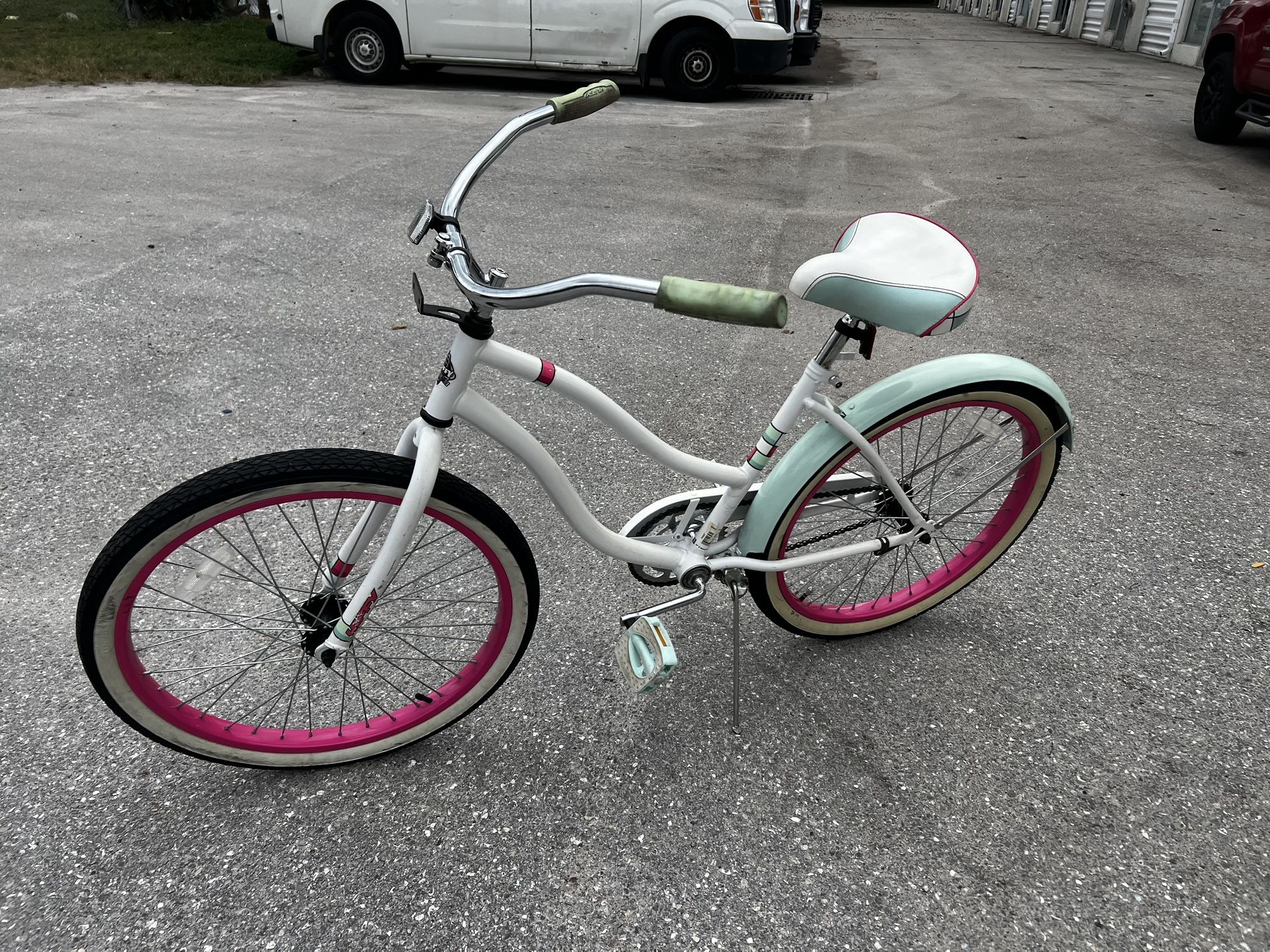 24” Huffy Summerland Girl’s Beach Cruiser Bike Bicycle White Mint Green! Great condition ready to ride! Retails $199.99 Great for woman or kid’s 4’5” to about 5’0”