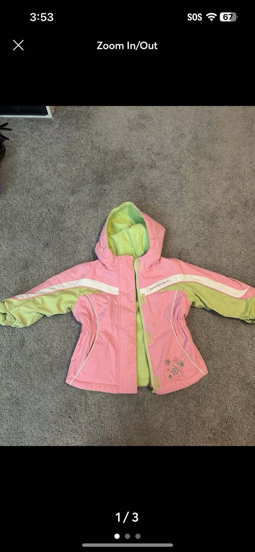 ZeroXposur baby girl Coat jacket Hood Winter Ski Snow Kidcore Play 18 months