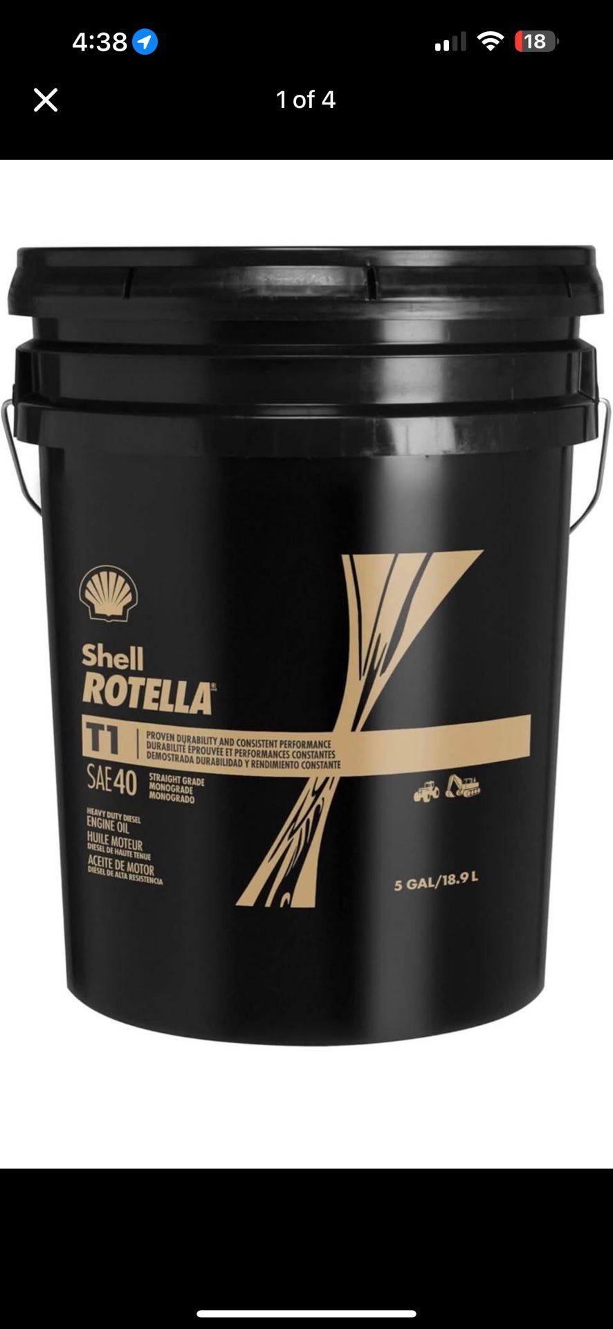 Shell Rotella T1 Conventional SAE 40 Diesel Engine Oil (CF-2/SL, 5-Gallon Pail)