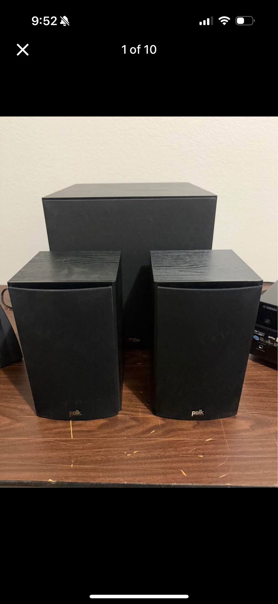 Vintage Polk Audio system. Was in my parents home and professionally installed by Best Buy in the 2010’s, the receiver says it all. Still looks PERFECT and sounds even better. Super beefy bass, crisp audio and the smoothest sound you can possibly get at home. The receiver gives it that personal touch to really control how it sounds, only selling as my parents downsized and have no room.