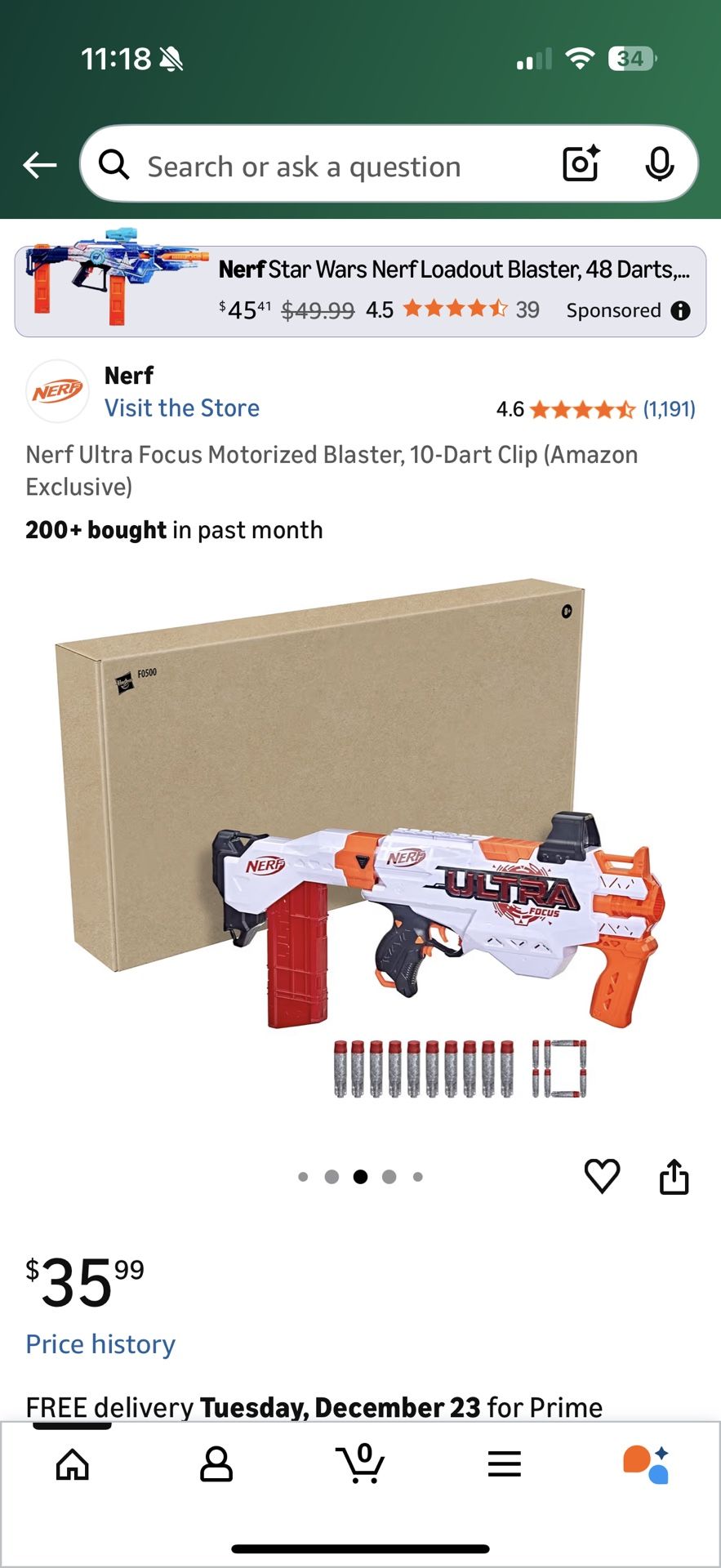 Nerf Ultra Focus Motorized Blaster, 10-Dart Clip (Amazon Exclusive) New in box. Opened but never fired. Pickup in Northgate by Hazelwolf.