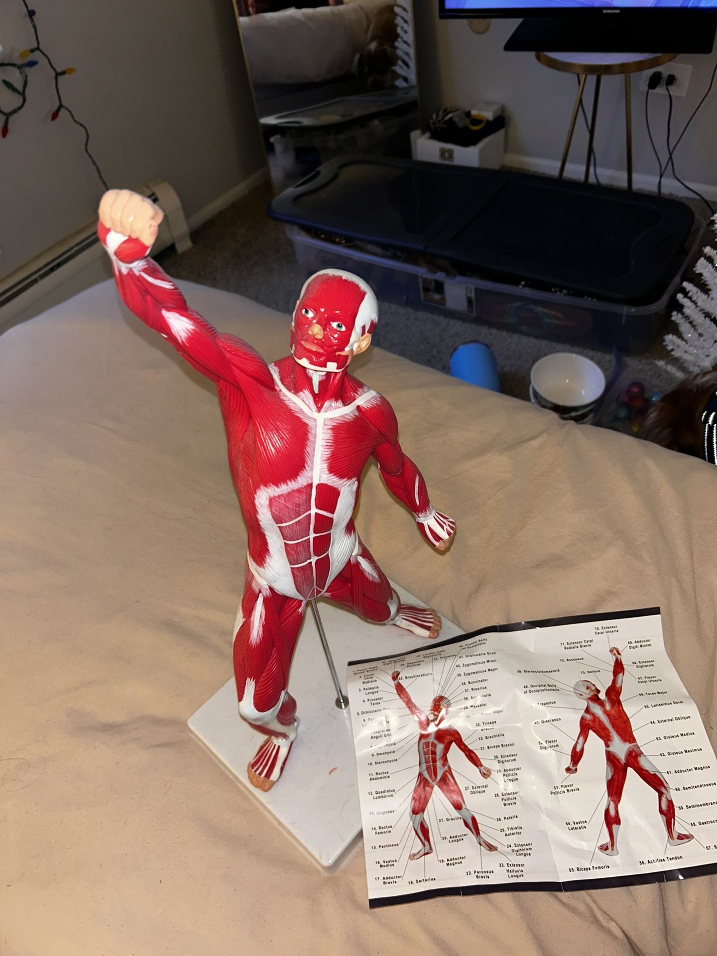 1 1/2 ft tall plastic muscle study guide. Perfect for anatomy students learning the muscular system. Guide sheet included. Bought this on Amazon last year and it helped me through school.