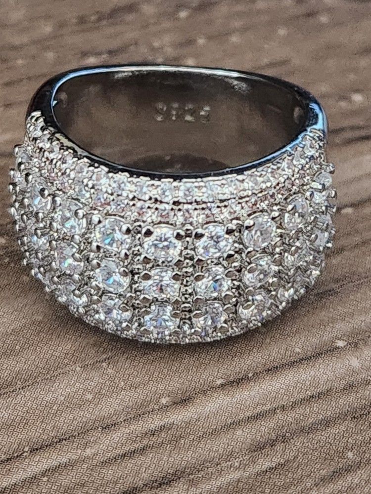 Pick up at 94th ave and McDowell Sparkly ring. This 925 sterling silver ring has a wide band., approximately 3/8" thck. Ring size 8 Features multiple rows of clear stones. Super shiny.