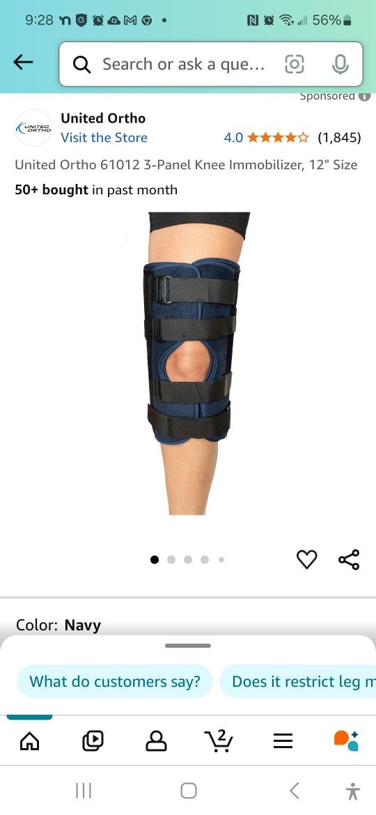 United Ortho 61012 3-Panel Knee Immobilizer, 12" Size
