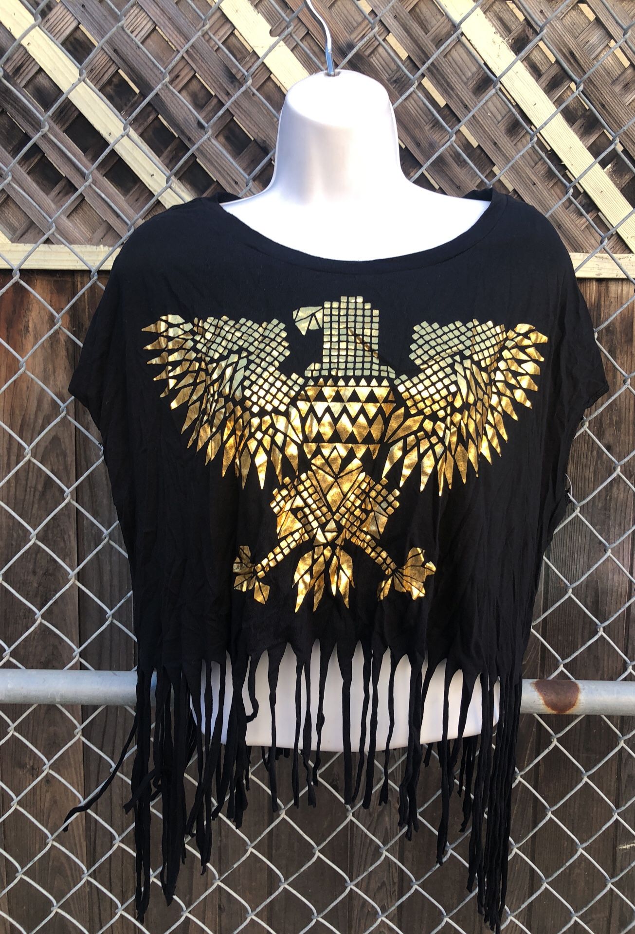 NEW gold and black crop top with fringe