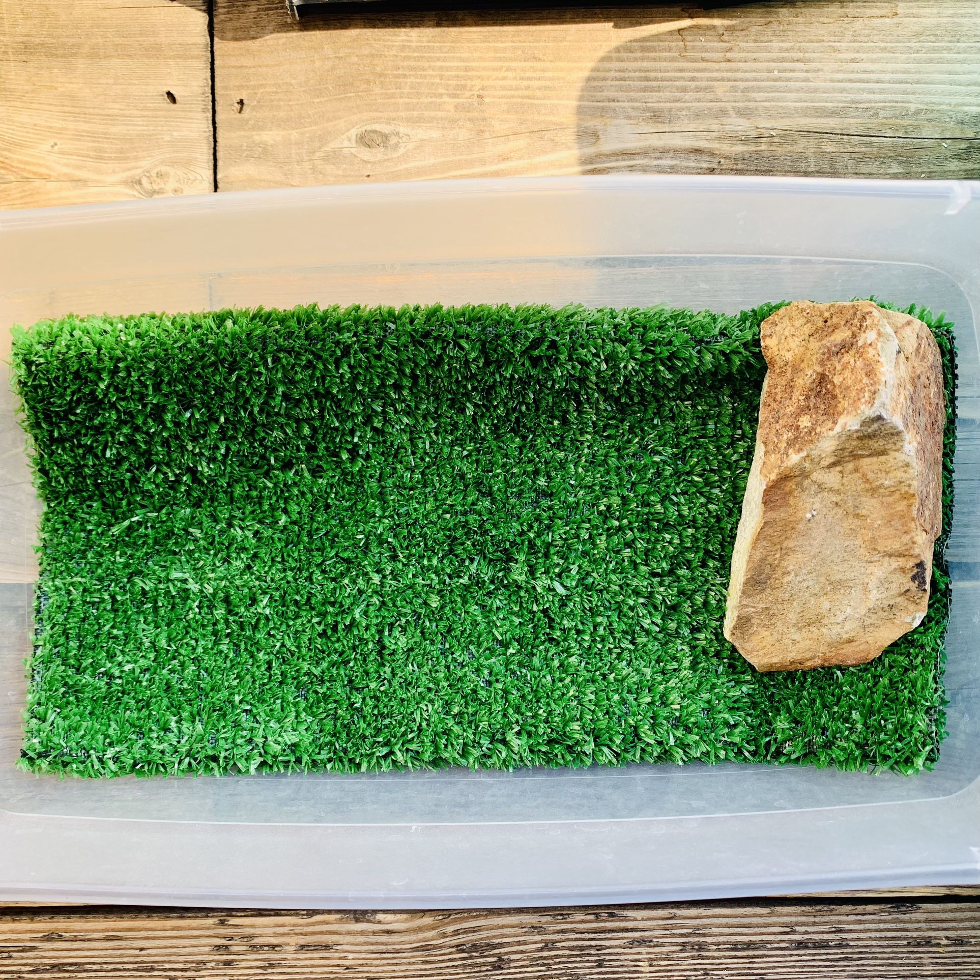 Rubbermaid Bearded dragon nursery, includes turf and rock and a little friend.