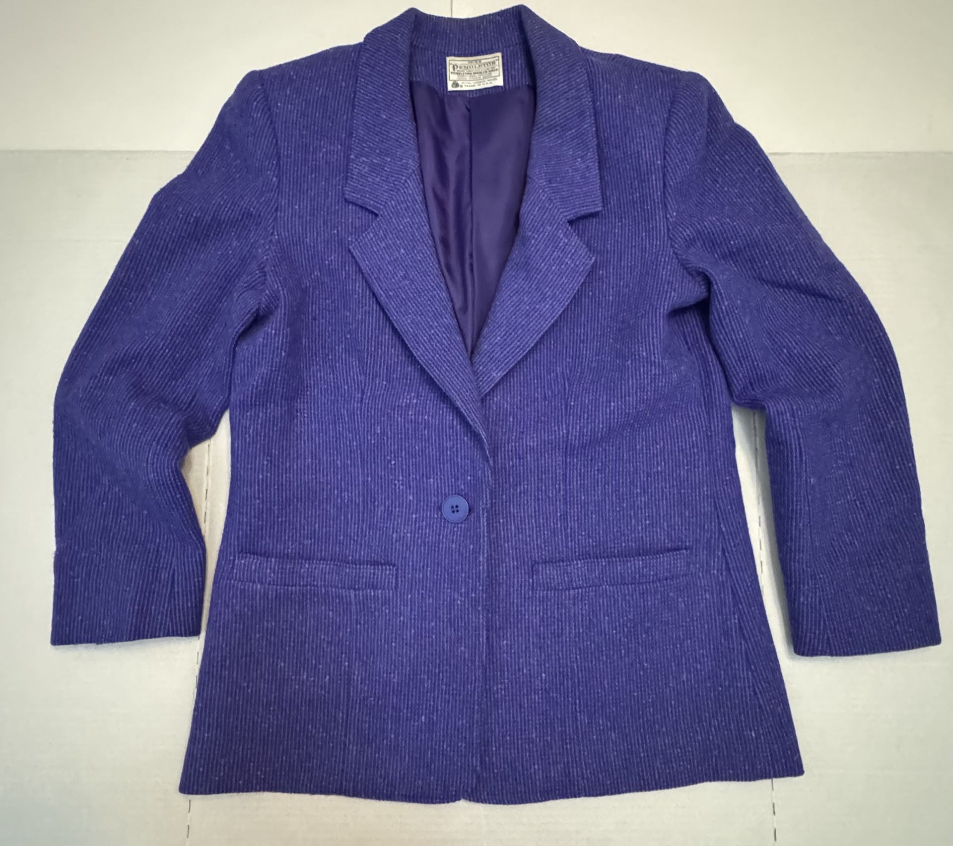 Pre Owned Good Last 3 Photos Button & Marks I have not tried to remove marks VTG Miss Pendleton Blazer Wool Textured Padded Shoulders Satin Lined Purple Women See Measurements for Size