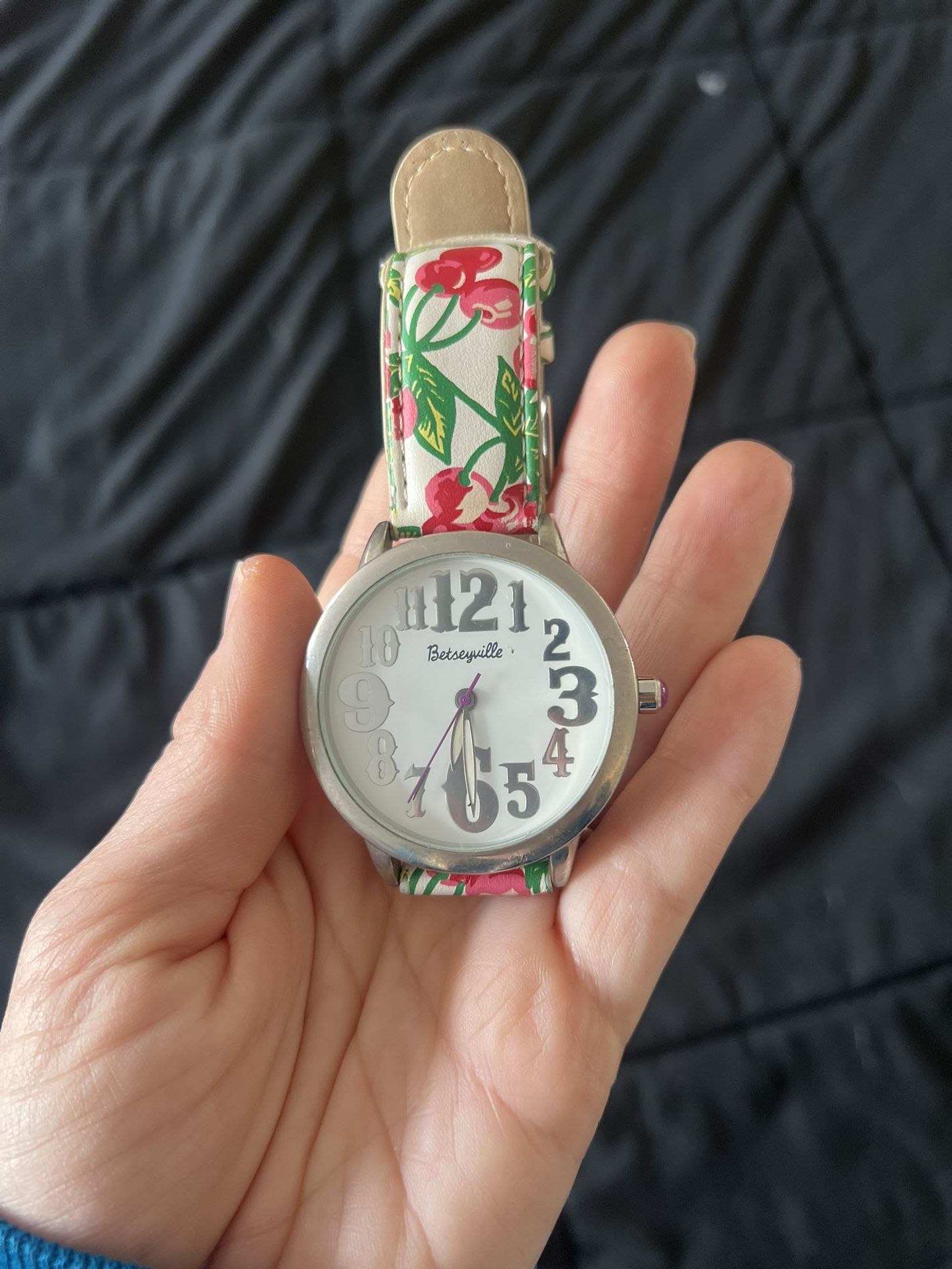 Betsey Johnson Cherry Watch Pre-Owned Excellent condition Needs a new battery Super CUTE watch! White round face with silver numbers, hot pink cherries with green leaves on a white band.