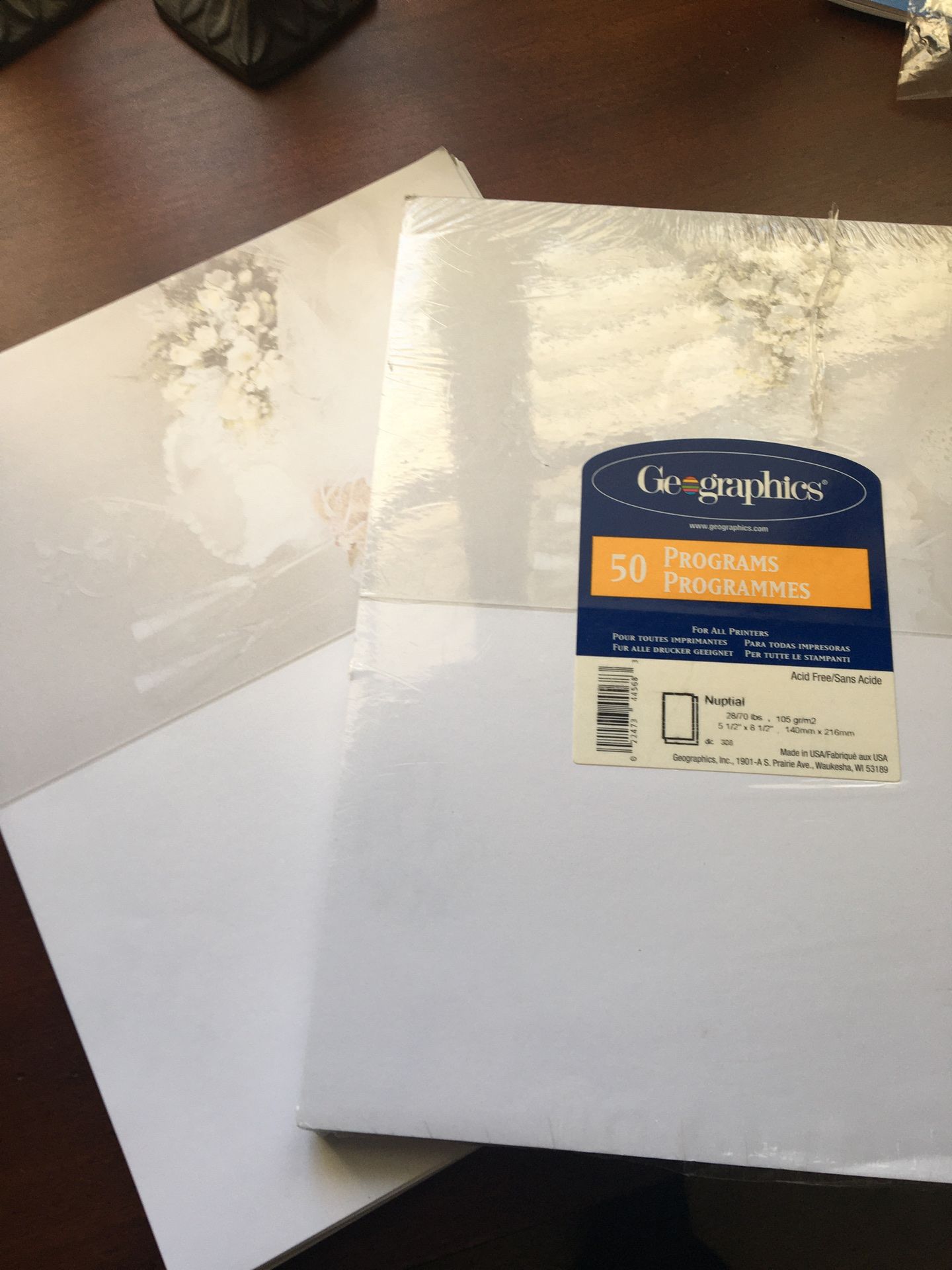 Wedding paper programs for program or announcements.