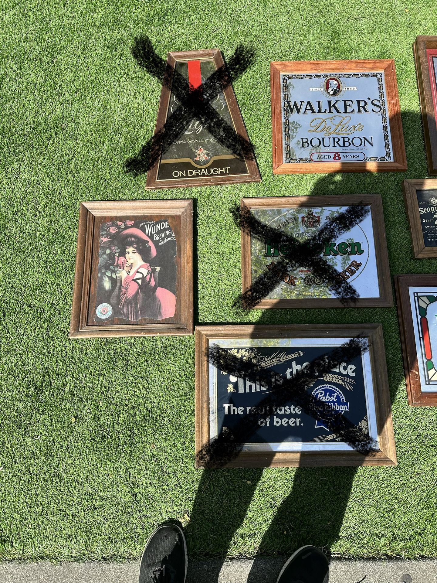 I have some vintage beer signs and mirrors couple have sold they have x through them asking 30 each for them each except Budweiser and Seagram’s 7 small mirror.