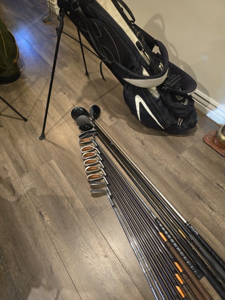 FULL GOLF CLUBS SET WITH TAYLORMADE GOLF STANDBAG (12 CLUBS SET)