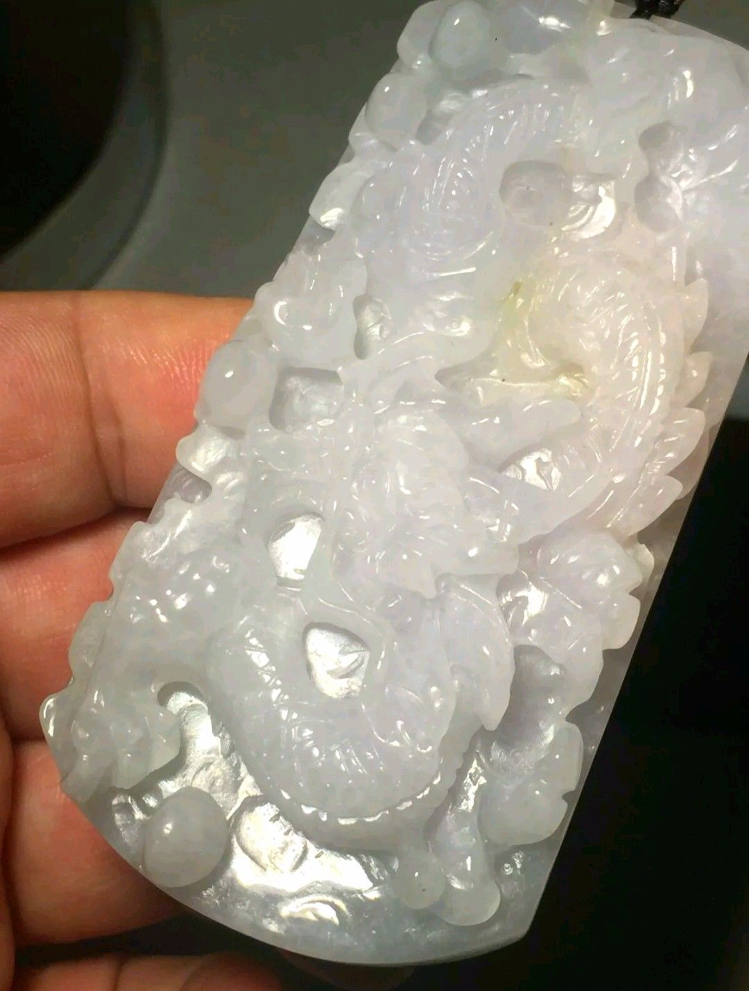 Genuine Burma type A icy jade Jadeite pendant Dragon. 106 gr. 88x42.6x17 mm. Vintage jadeite. Real,100%natural and untreated.