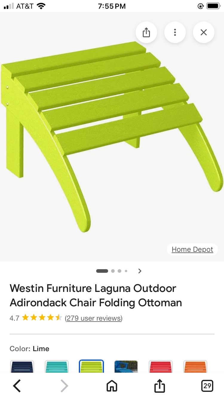 Westin Furniture Laguna Outdoor Adirondack Chair Folding Ottoman - Lime. New but box has been opened. Compare to online at $47. Pickup at Herndon/99 area in Fresno