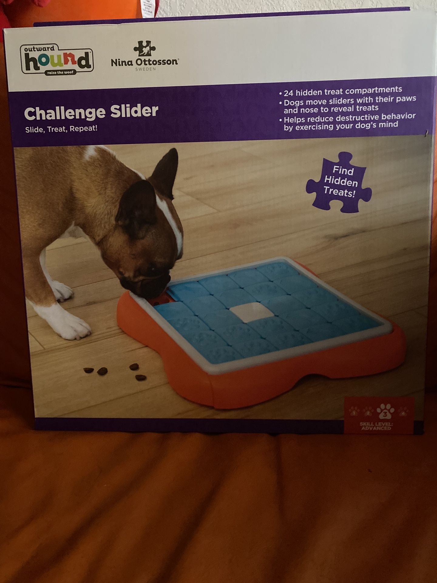 Dog Challenger- Great Entertainment for your pup to Find hidden treats. With 24 Compartments. Slide, Treat, Repeat, Level 3 Fun game to keep your fur baby busy and excited to find treats. New never used. New toy for your fur baby